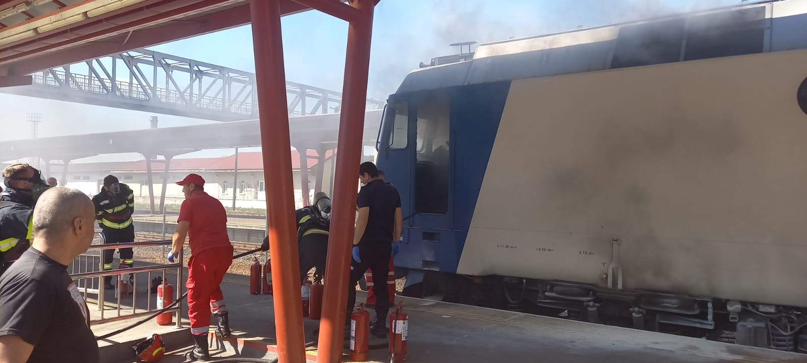 „Detașamentul de pompieri Vaslui intervine cu trei autospeciale și echipaje specializate pentru stingerea unui incendiu izbucnit în interiorul unei locomotive staționate în gara CFR Vaslui (tren IR 1830).