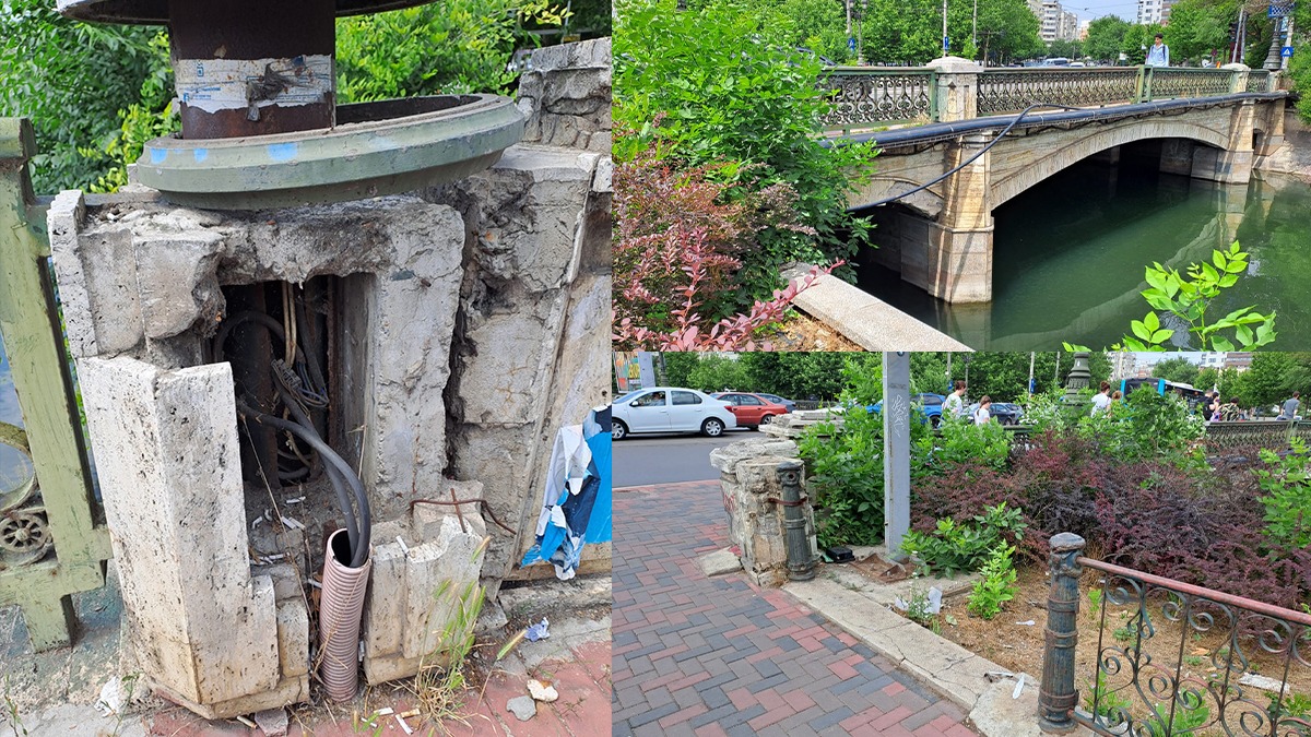 Așa cum se poate vedea din imaginile publicate de Gândul (foto și video), elementele parapetelor sunt efectiv sparte, iar în unele locuri lipsesc. De asemenea, balustrada podului este ruginită.