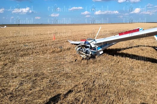 Planorul s-a prăbuşit, sâmbătă seară, pe un câmp din judeţul Olt, între localităţile Caracal şi Drăghiceni.