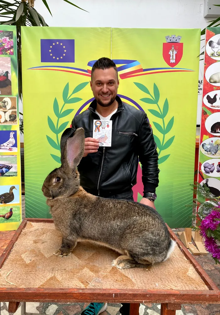 “În 2002, am fost cu tatăl meu în Piața Iosefin, în Timișoara, pentru că eu căutam mereu iepuri mari. Și acolo am găsit pe cineva care avea o iepuriță mare și una mai micuță. Prețul nu-l mai știu exact, dar știu că a fost exagerat pentru vremurile alea. Ăla a fost primul iepure uriaș gri pe care l-am avut, cumpărat de tatăl meu, în martie 2002. A fost primul iepure de rasă pură, cu acte și tatuaj, pe care eu l-am avut. Ulterior l-am căutat pe Iacob Hertzog, pentru că aveam nevoie și de mascul la iepuroaica pe care am cumpărat-o și trebuia să fie, la fel, de rasă. Când am ajuns la el, câteva nopți nu am dormit de bucurie. Nu îți poți imagina ce avea omul ăla. Peste 100 de iepuri, de toate rasele! M-am împrietenit cu el și, în fiecare sâmbătă, făceam naveta cu trenul de la Lugoj, unde stăteam eu, până la Recaș. Mă uitam, stăteam, învățam! De la el am învățat tot despre iepurii de rasă. Și el m-a văzut că avem ochi pentru iepuri și le spunea mereu celor de la asociație că o să fiu un mare crescător”, își amintește Lucian.
