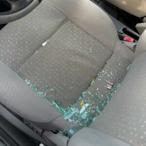 Agresorul a aruncat cu o sticlă de bere în geamul lateral stâng al mașinii (sursă foto: arhivă personală)