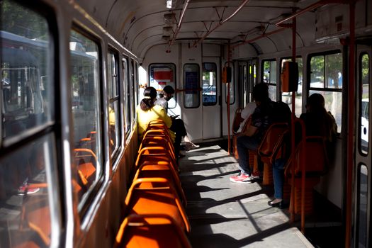 Am testat și noi transportul cu tramvaiul pe liniile unde circulă adevărate „cazane”, multe dintre ele murdare și prăfuite. Vin la pachet cu nepăsarea unor călători care își „uită” printre scaune pahare de cafea, gumă de mestecat sau sticle de bere cunoscute ca „grenade”.