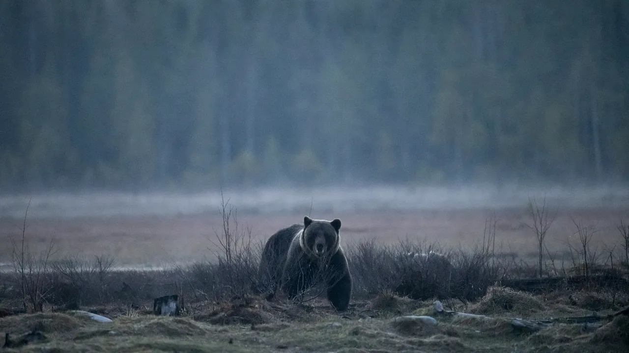 Un bărbat a încercat să alunge ursul și a aruncat cu bețe, dar ursul s-a repezit spre el, iar omul a căzut.