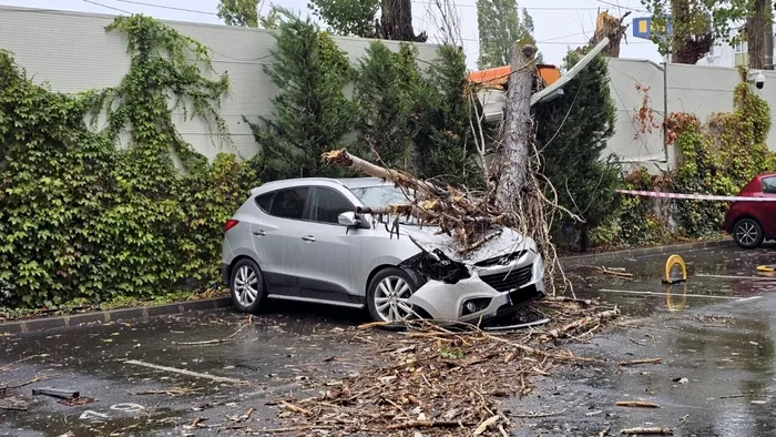 Update 3 octombrie 2025, ora 12:02. Vezi AICI momentul în care un copac uriaș cade pe o mașină în mers.
