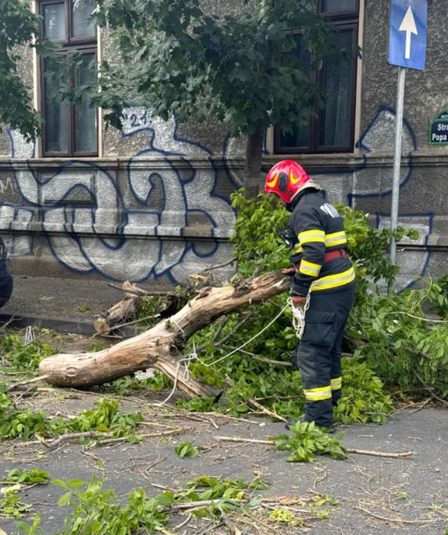 Update 3 octombrie 2025, ora 09:18. Pompierii ISU au intervenit pentru îndepărtarea mai multor arbori în următoarele zone:
