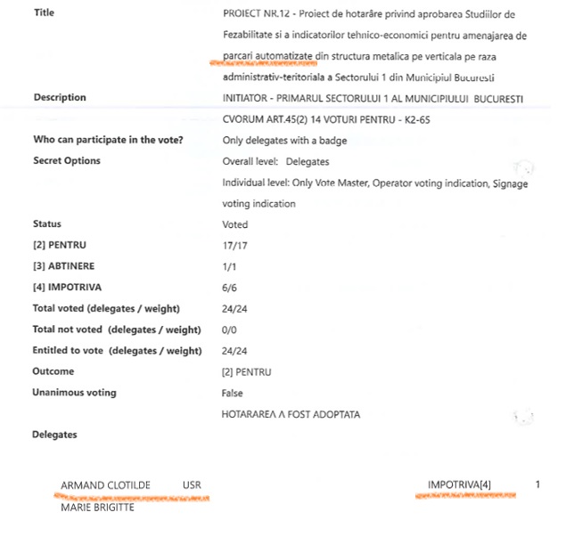 au la bază Hotărârea Consiliului Local nr. 53 din 28.02.2019 privind 𝑎𝑝𝑟𝑜𝑏𝑎𝑟𝑒𝑎 𝑆𝑡𝑢𝑑𝑖𝑖𝑙𝑜𝑟 𝑑𝑒 𝐹𝑒𝑧𝑎𝑏𝑖𝑙𝑖𝑡𝑎𝑡𝑒 𝑠̦𝑖 𝑎 𝑖𝑛𝑑𝑖𝑐𝑎𝑡𝑜𝑟𝑖𝑙𝑜𝑟 𝑡𝑒ℎ𝑛𝑖𝑐𝑜-𝑒𝑐𝑜𝑛𝑜𝑚𝑖𝑐𝑖 𝑝𝑒𝑛𝑡𝑟𝑢 𝑎𝑚𝑒𝑛𝑎𝑗𝑎𝑟𝑒𝑎 𝑑𝑒 𝑝𝑎𝑟𝑐𝑎̆𝑟𝑖 𝑎𝑢𝑡𝑜𝑚𝑎𝑡𝑖𝑧𝑎𝑡𝑒 𝑑𝑖𝑛 𝑠𝑡𝑟𝑢𝑐𝑡𝑢𝑟𝑎̆ 𝑚𝑒𝑡𝑎𝑙𝑖𝑐𝑎̆ 𝑝𝑒 𝑣𝑒𝑟𝑡𝑖𝑐𝑎𝑙𝑎̆ 𝑝𝑒 𝑟𝑎𝑧𝑎 𝑎𝑑𝑚𝑖𝑛𝑖𝑠𝑡𝑟𝑎𝑡𝑖𝑣-𝑡𝑒𝑟𝑖𝑡𝑜𝑟𝑖𝑎𝑙𝑎̆ 𝑎 𝑆𝑒𝑐𝑡𝑜𝑟𝑢𝑙𝑢𝑖 1 𝑑𝑖𝑛 𝑀𝑢𝑛𝑖𝑐𝑖𝑝𝑖𝑢𝑙 𝐵𝑢𝑐𝑢𝑟𝑒𝑠̦𝑡𝑖, pentru care votul primarului la acel moment a fost ÎMPOTRIVĂ”, menționează Ramona Porumb.