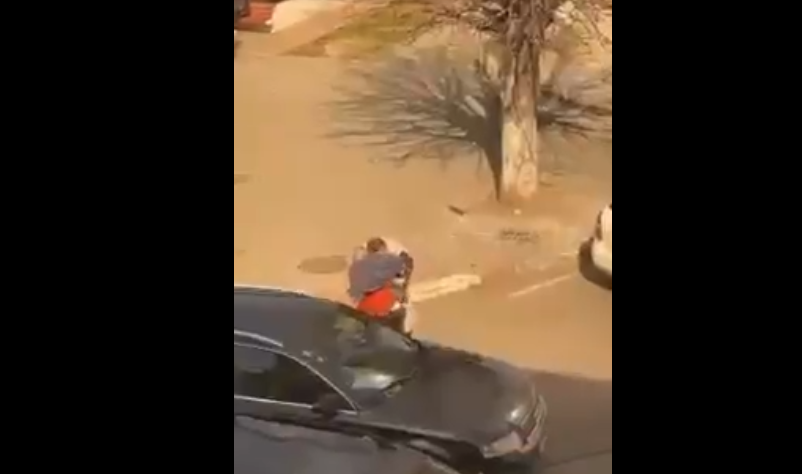 Pe imagini se vede cum cei doi bărbați se lovesc, iar unul dintre ei are un cuțit în mână și încearcă să-l înjunghie pe celălalt. Totul se întâmplă sub ochii îngroziți ai trecătorilor care stau pe margine și privesc lupta celor doi. La un moment dat, intervine un trecător, iar cei doi încetează într-un final scandalul. La fața locului a fost chemată și poliția care a declanșat o anchetă.