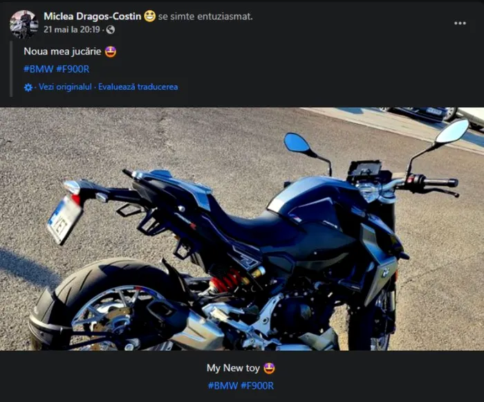 Tot acolo, Dragoș pusese fotografii cu motocicleta implicată în tragicul accident de vineri: „Noua mea jucărie”, scria tânărul pasionat de vehicule pe două roți.