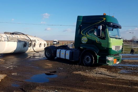 Cisterna s-a răsturnat pe DJ 212 între localitățile Spiru Haret și Berteștii de Jos în județul Brăila.