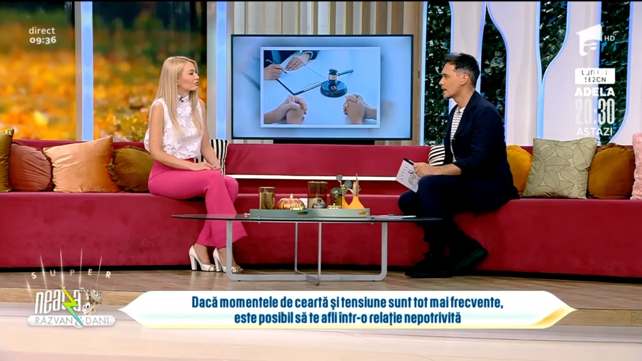Alina Nedeloiu, psiholog clinician, a vorbit, joi, la Super Neatza cu Răzvan și Dani, despre semnele care ne indică că suntem într-o relație nepotrivită pentru noi. Psihoterapeutul a afirmat că este esențial să fim atenți la existența vreunui tip de abuz în relația cu partenerul nostru, precizând că un rol extrem de important îl are comunicarea.