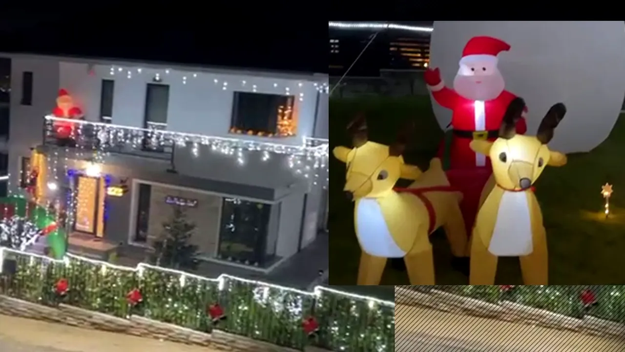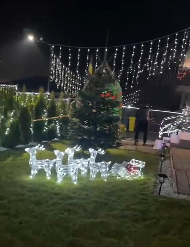 Vila familiei este luminată feeric, iar în balconul de la primul etaj al casei îi salută pe privitori și vizitatori chiar Moș Crăciun.