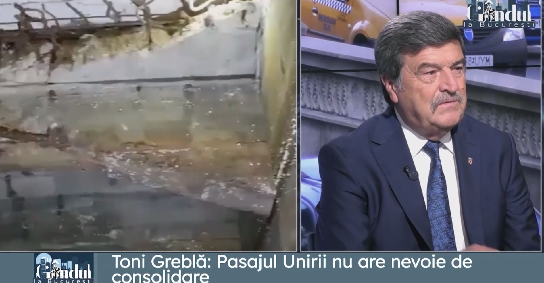 Prefectul Capitalei, Toni Greblă, a vorbit, în cadrul emisiunii „Cu Gândul la București, despre lucrările la Pasajul Unirii și problema „mai complicată” a planșeului și a casetei Dâmboviței, care ține de proximitatea față de metrou și alte obiective.