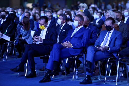 Congresul PNL a început la 11.00, cu participarea președintelui Klaus Iohannis, numai că scaunele au fost amplasate unul lângă celălalt, fără a se respecta vreo distanțare, așa cum impuneau măsurile de restricție. E drept, participanții aveau măștile de protecție, dar între ei nu exista distanțarea impusă de trendul ascendent al infectărilor cu noul coronavirus.