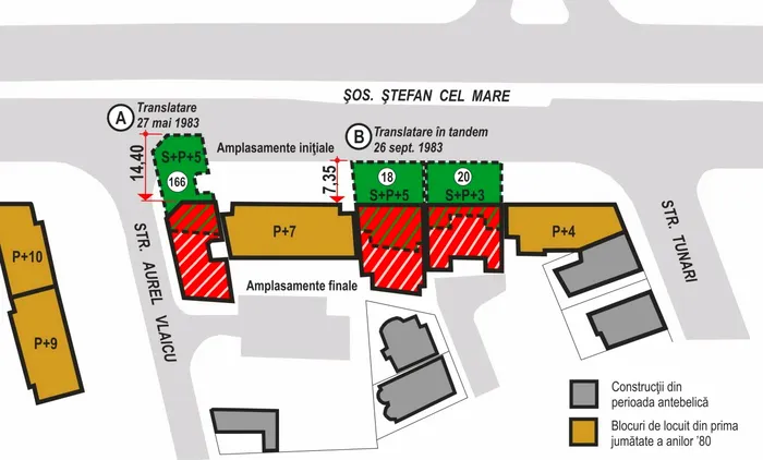 Explicații ÎN EXCLUSIVITATE pentru GÂNDUL am primit de la arhitectul Alexandru Panaitescu, dar și de la arhitecta Cristina Popovici, care a locuit și locuiește chiar în blocul de pe strada Aurel Vlaicu, translatat în 1983.