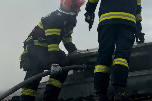 Potrivit primelor date, construcția cuprinsă de flăcări este pe structură de beton, fără etaj, folosită pentru depozitare mase plastice.