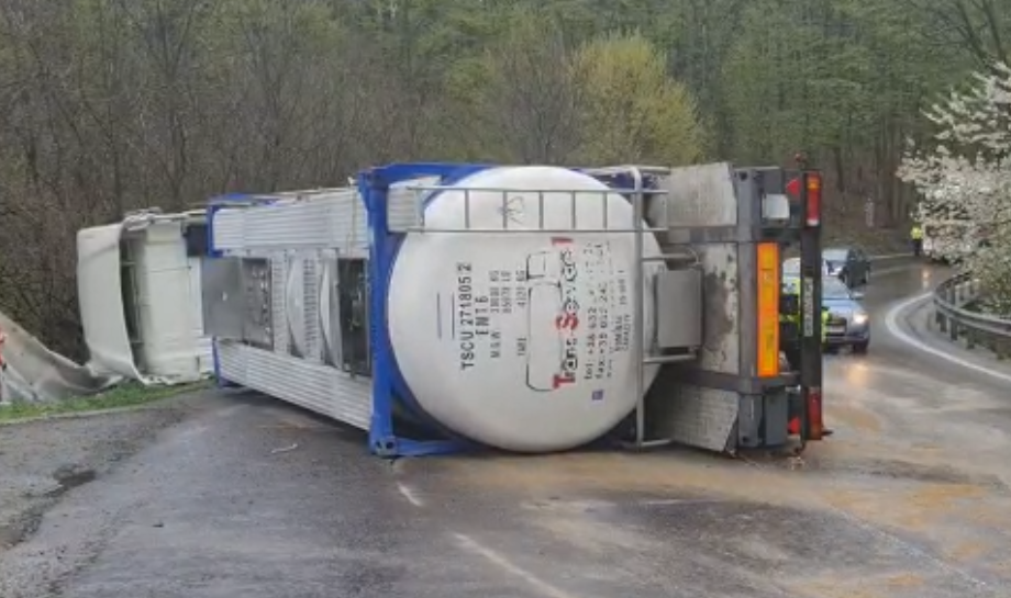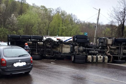 Mastodontul era condus de un șofer din Ucraina, care nu a ținut cont că șoseaua este udă după ploaie, și a intrat cu viteză într-o curbă ușoară.