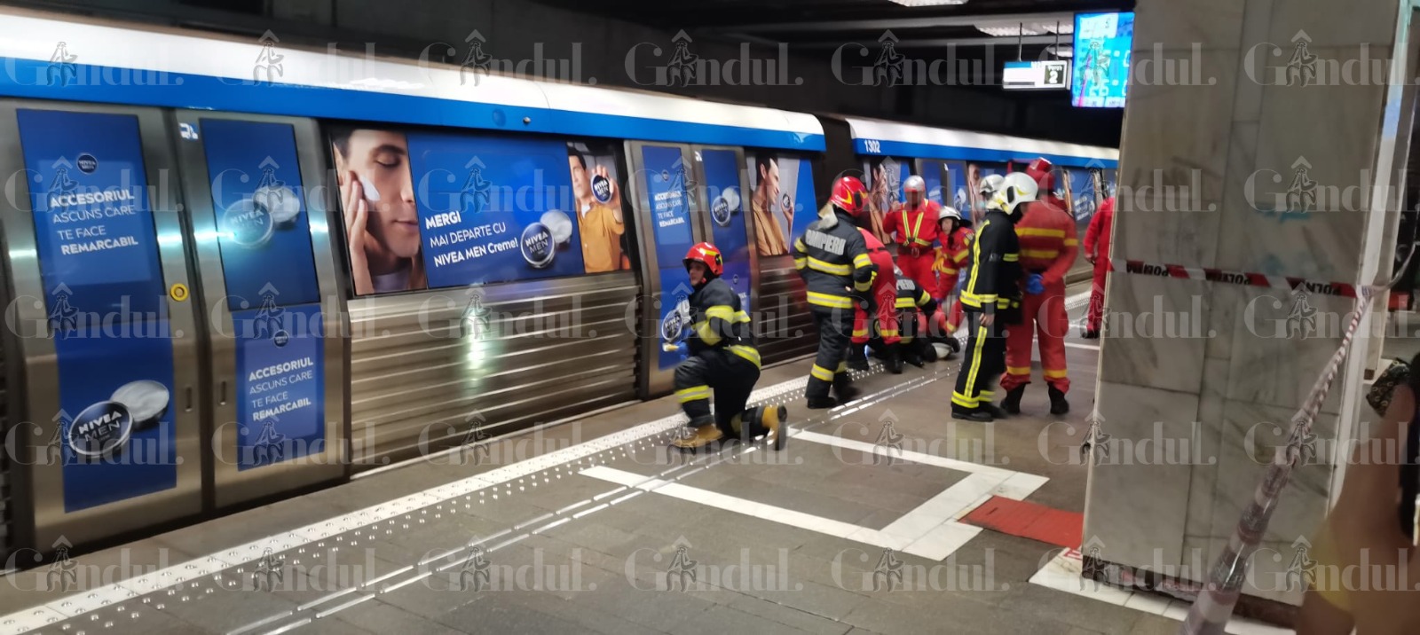 „Mecanicul conductor confirmă că a lovit pe cineva, doar că nu există contact vizual între colegii noștri (ISU – n.r.) și victimă.Trebuie oprită mai întâi alimentarea electrică de la nivelul șinelor. Nu se vede victima, deoarece aceasta nu este nici la intrare și nici la ieșirea din stație, ci este undeva prinsă la mijlocul metroului”, au preciat surse ISU pentru Gândul.