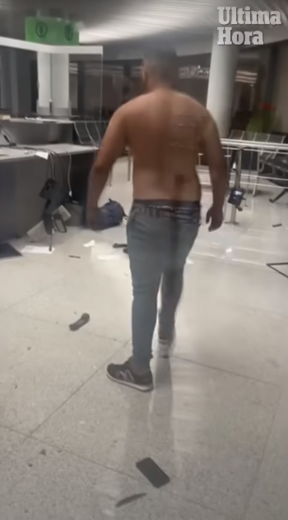 Înainte de incident, bărbatul și-a scos tricoul în semn de furie și a început să arunce cu mobilierul în direcția personalului aeroportului.