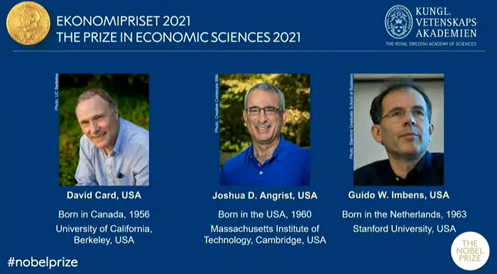 Luni, 11 octombrie 2021, a fost anunţat, la Stockholm, laureatul Premiul Riksbank Sveriges – Banca Naţională a Suediei – în Ştiinţe Economice, acordat în memoria lui Alfred Nobel la Academia Regală de Ştiinţe din Suedia, iar câștigătorii sunt David Card, Joshua D. Angrist și Guido W. Imbens.