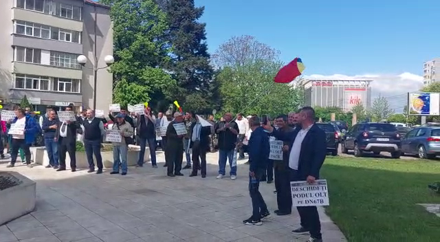 100 de localnici au protestat vineri în fața Prefecturii Olt și au cerut redeschiderea podului ce face legătura între județele Olt și Vâlcea, închis pentru că riscă să se prăbușească.