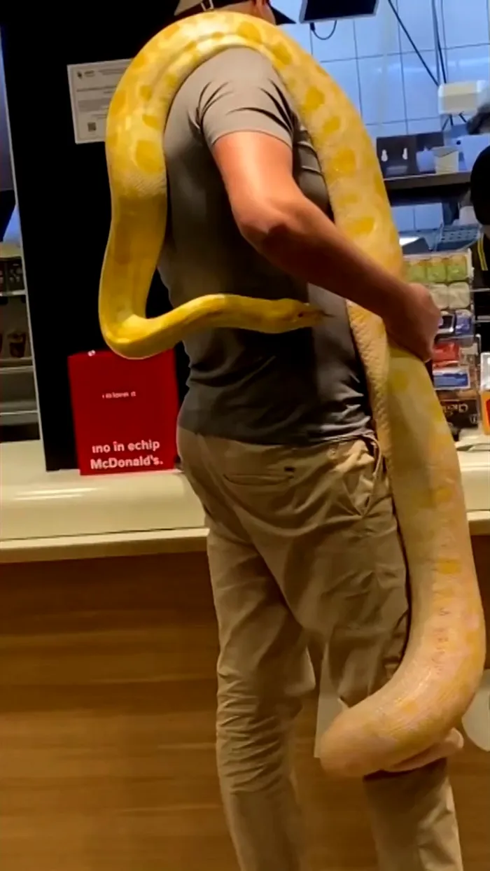 Scene incredibile au fost filmate într-un restaurant al unui cunoscut lanț fast-food: un bărbat a venit să facă o comandă însoțit de un… piton.