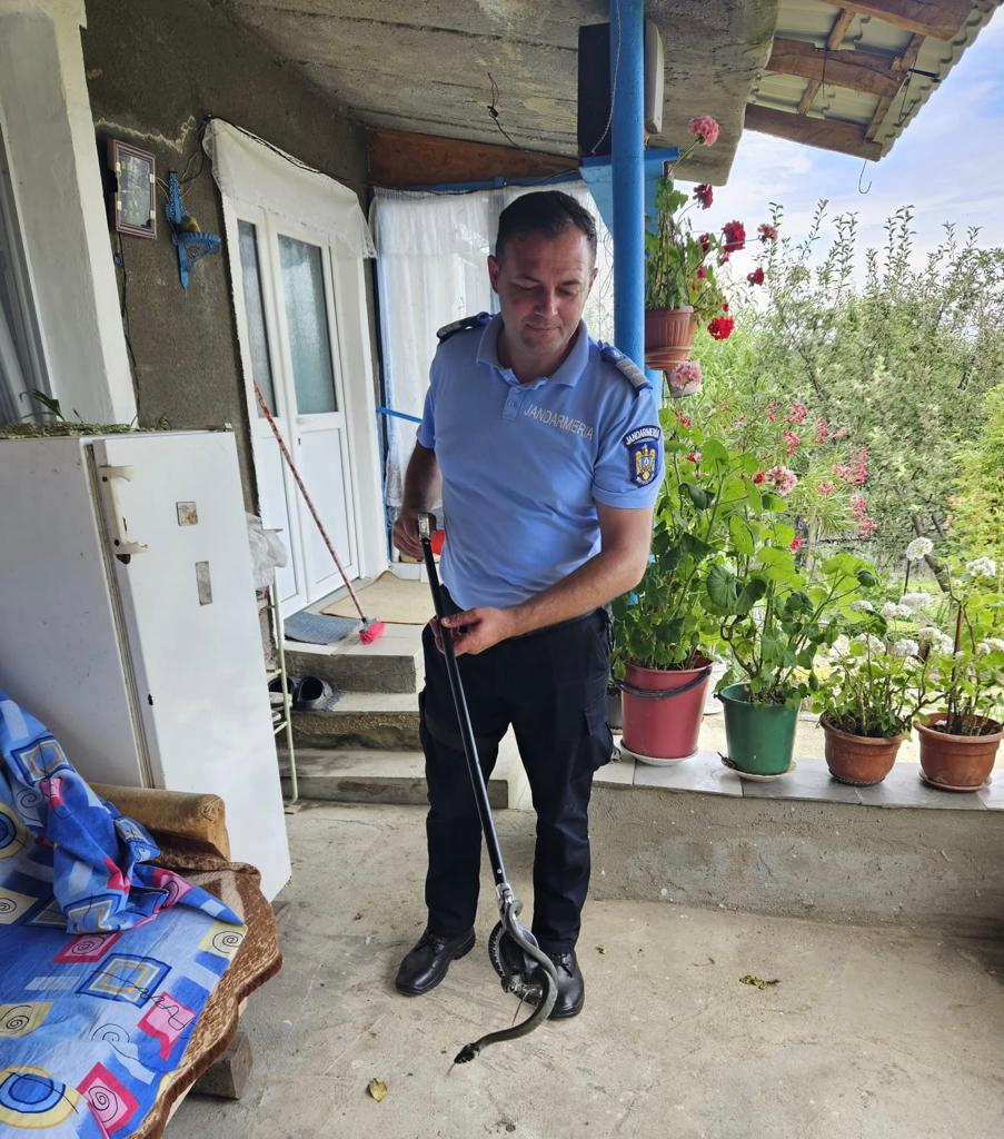 În prima situație, un șarpe a fost găsit de jandarmi în terasă și extras din spatele unui frigider, celălalt șarpe fiind îndepărtat de sub podețul din fața locuinței.