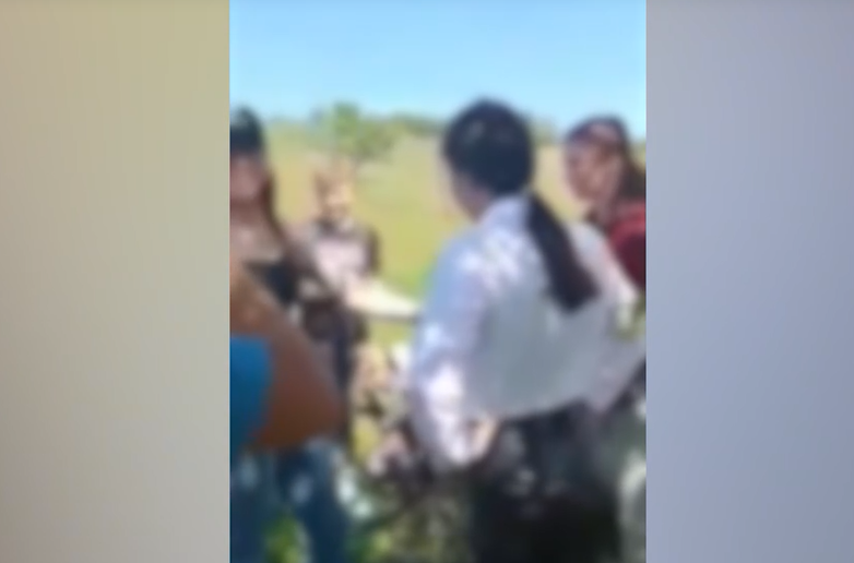 Întreaga scenă seamănă cu un proces public: copiii o acuză pe rând pe fata ținută de mână pentru a nu fugi că i-a înjurat, că le-a spus că „se îmbracă de la tomberoane” și fetelor că ar fi „curve”, „fițoase” și că au „rămas gravide cu gemeni”. De fiecare dată când victima încearcă să se apere, unul dintre copii o lovește din nou peste față sau peste cap, iar șirul de amenințări la adresa fetei nu încetează în cele patru minute ale filmării.