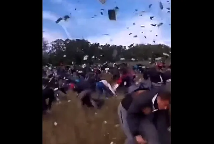 Potrivit imaginilor surprinse, oamenii s-au îmbulzit să prindă o parte din bancnote.