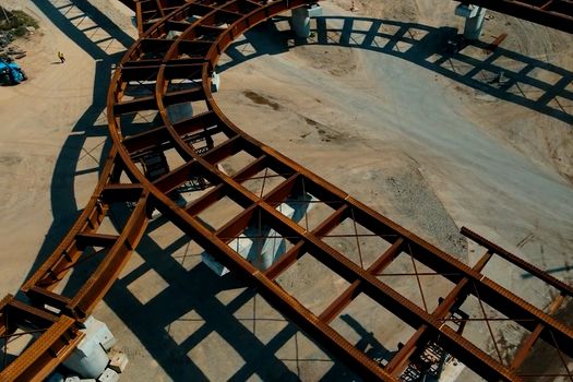 • S-a finalizat montarea tablierului metalic și continuă cu îmbinările cu șuruburi și prin sudură.