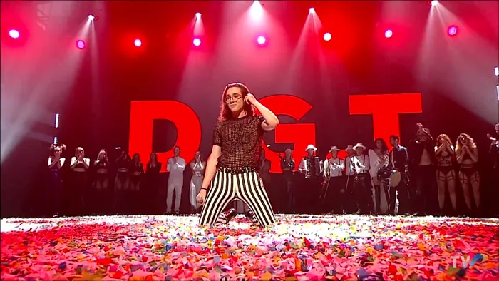 „E copleşitor. Sunt atât de fericită. Asta este pentru voi. Mulţumesc!”, a spus cântăreaţa după ce a primit trofeul din partea Kalush Orchestra, grupul ucrainean care a câtiga trofeul anul trecut.