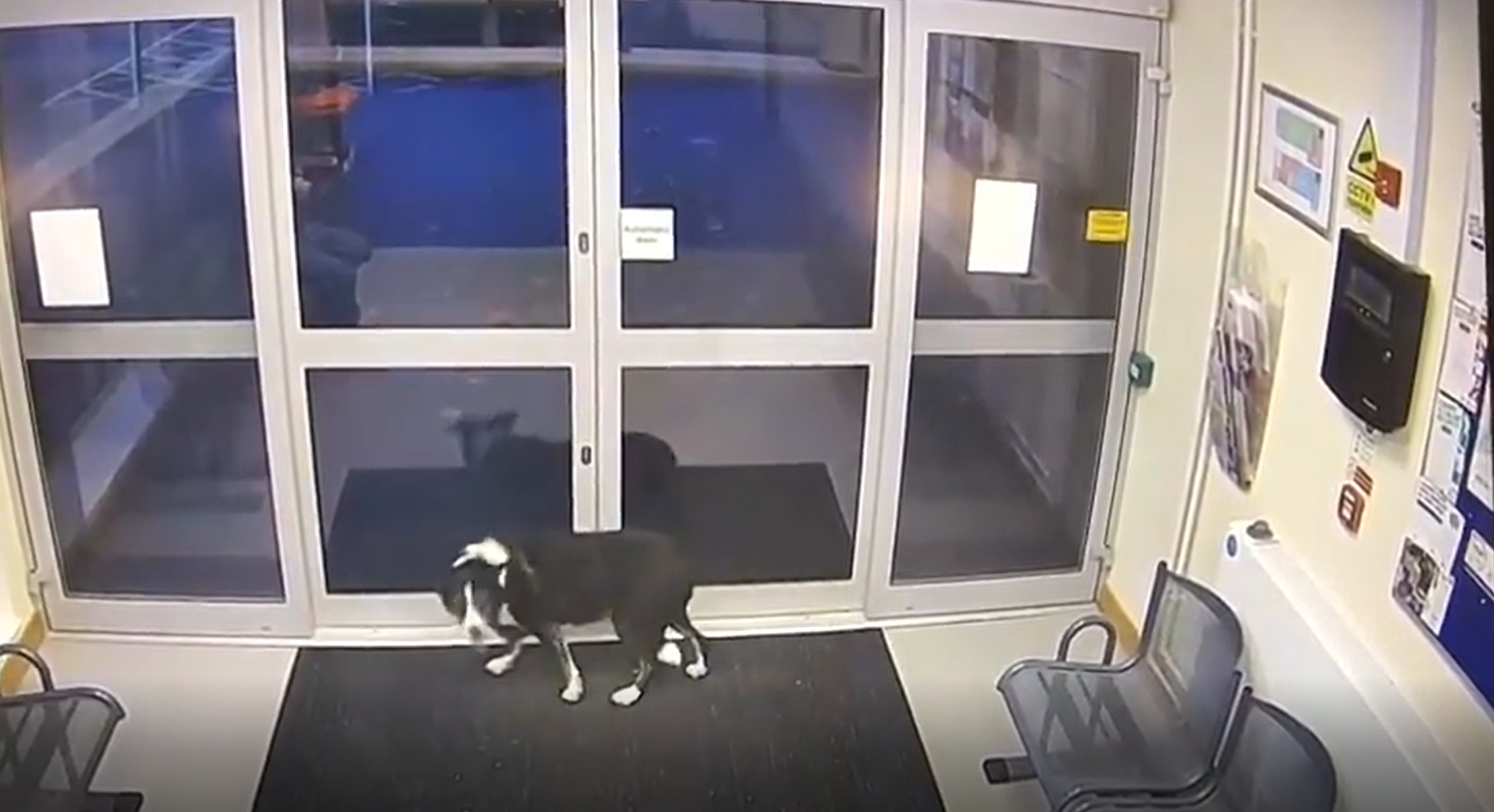 Imaginile surprinse de camerele de supraveghere video o arată pe cățelușa Rosie mergând către ușile automate ale secției de poliție din Loughsborough, un oraș aflat la 70 km sud-est de Birmingham, la scurt timp după se s-a pierdut de proprietarii ei, pe data de 4 noiembrie.