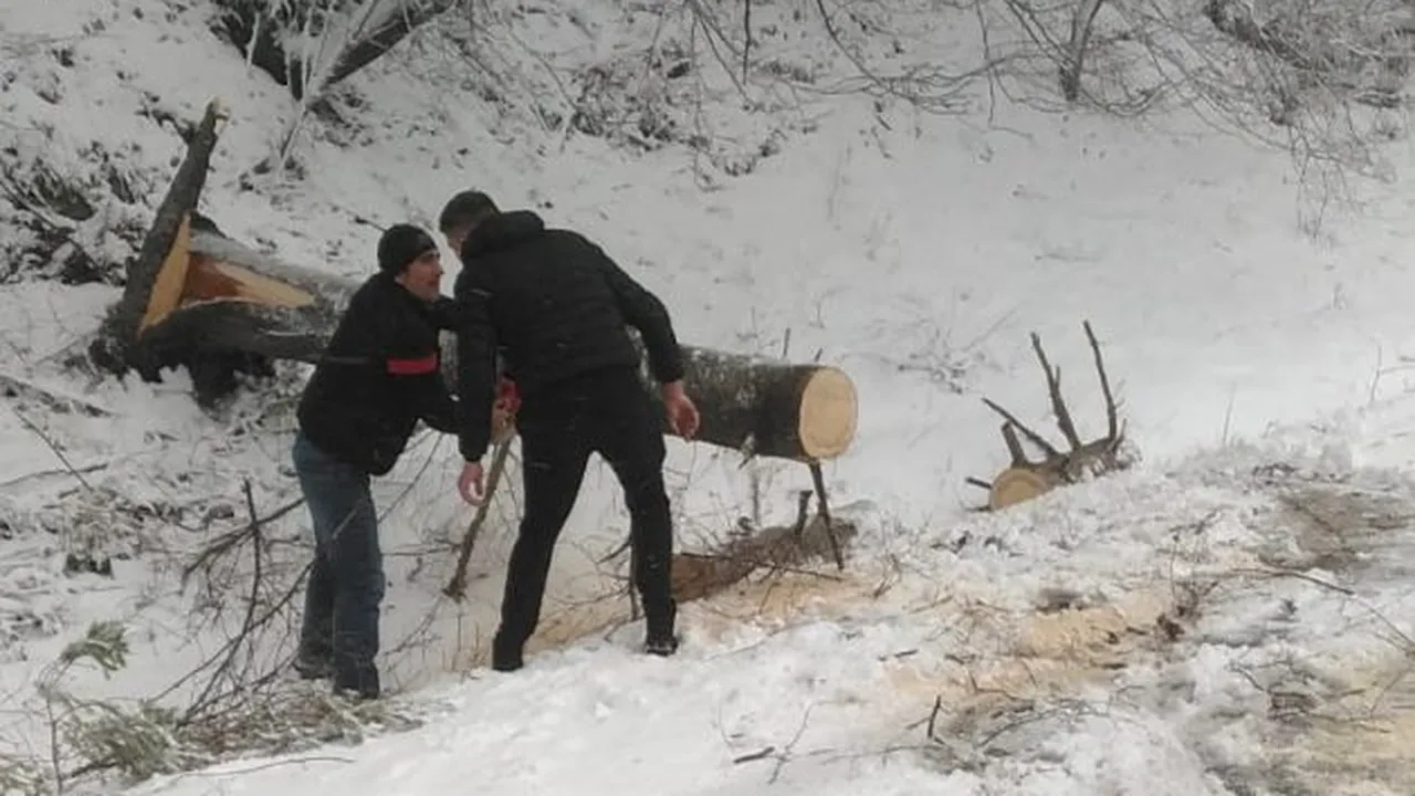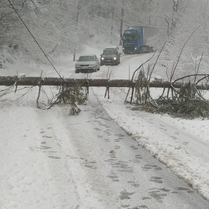 Mai mult, un brad a căzut pe stradă și a blocat circulația.