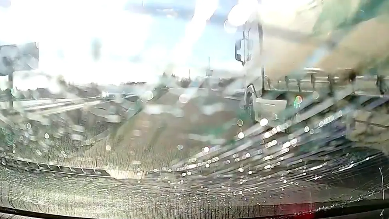 Un șofer din Cluj, la un pas de tragedie, după ce un ȚURȚUR uriaș căzut de pe un TIR i-a spart parbrizul mașinii chiar în timpul depășirii