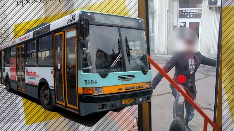 Mai mult, unul dintre cei doi agresori a început să lovească puternic cu piciorul în ușa troleului.