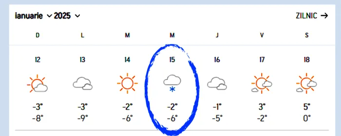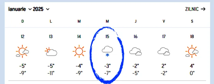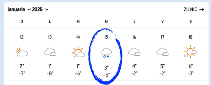- Joi, 16 ianuarie 2025: temperatura maximă de 4 grade, temperatura minimă de -2 grade Celsius.