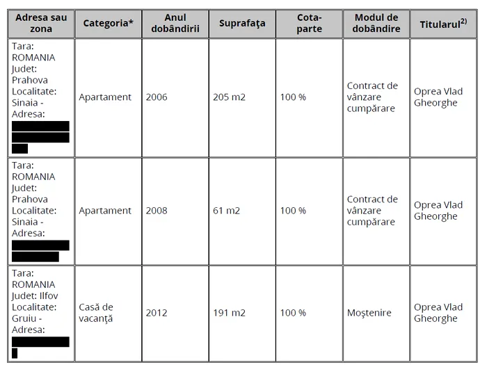 În cauză, s-a mai reținut că, în calitate de primar al orașului Sinaia, suspectul Oprea Vlad Gheorghe, persoană obligată la depunerea declarațiilor de avere, ar fi atestat în cuprinsul acestora, aspecte necorespunzătoare adevărului, cum ar fi: