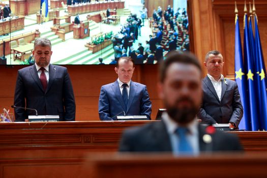 Anterior discursurilor, senatorii și deputații au ținut un moment de reculegere pentru victimele războiului din Ucraina.