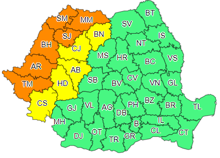 Așadar, în intervalul 23 iunie, ora 19 – 24 iunie, ora 10, în vestul, nord-vestul și local în centrul țării, vor fi perioade cu instabilitate atmosferică. Aceasta se va manifesta prin averse, descărcări electrice, intensificări de scurtă durată ale vântului (rafale de 55…75 km/h) și pe arii restrânse vijelii și grindină. În intervale scurte de timp sau prin acumulare cantitățile de apă vor fi de 20…25 l/mp și izolat de peste 30…40 l/mp.