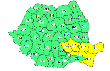 În intervalul 02 august, ora 12:00 – 02 august, ora 20:00, local în Dobrogea, nordul și în estul Munteniei vor fi perioade cu instabilitate atmosferică, ce se va manifesta prin intensificări ale vântului (rafale de 55…75 km/h), vijelii, descărcări electrice, averse torențiale și grindină. În intervale scurte de timp, cantitățile de apă vor fi de 20…25 l/mp și izolat de peste 30 l/mp.