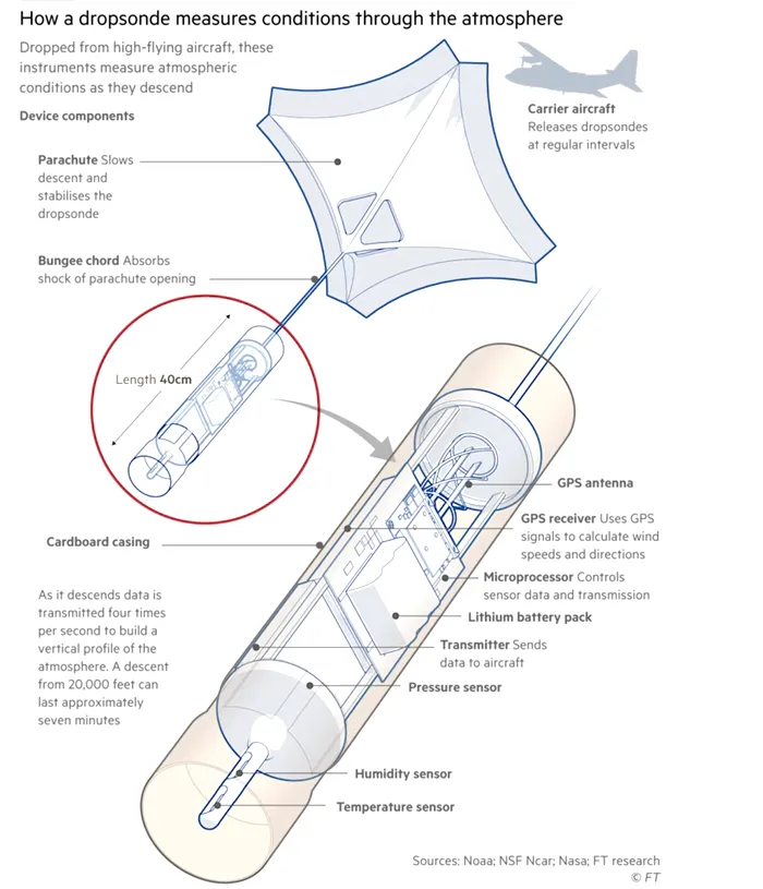 Aeronavele sunt echipate cu o serie de instrumente pentru a măsura vânturile, temperatura, presiunea și umiditatea din jurul și de sub ele. Echipajul va elibera, de asemenea, sonde numite dropsonde care transmit date în timp ce coboară cu o parașută prin atmosferă.