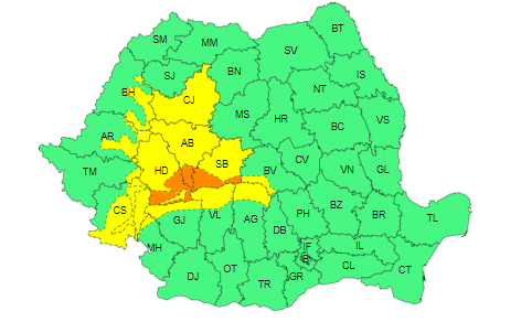 În intervalul 13 februarie, ora 10 – 13 februarie, ora 22, în zona montană a județelor Hunedoara, Alba și Sibiu va ninge abundent și se va depune strat consistent de zăpadă. Cantitățile de precipitații vor fi de 50…70 l/mp.