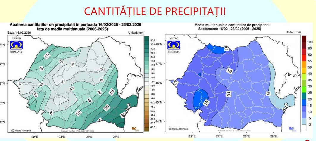 Cantitățile de precipitații vor fi excedentare în regiunile vestice, nord-vestice și centrale. În rest, vor fi apropiate de cele normale.
