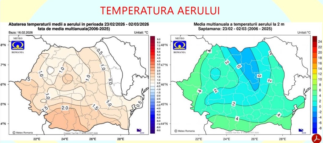 Temperatura medie a aerului va avea valori ușor mai ridicate decât cele normale pentru această perioadă în cea mai mare parte a țării. Primăvara meteorologică își face simțită prezența.
