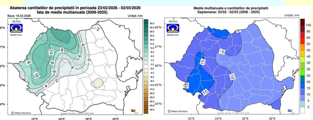 Valorile termice vor fi mai coborâte decât cele specifice pentru această săptămână în regiunile estice. În rest, temperaturile se vor situa în jurul celor normale. Regimul pluviometric va fi deficitar la nivelul întregii țări, transmite ANM.