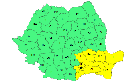 Așadar, în intervalul 4 mai, ora 10 – 4 mai, ora 19, în Dobrogea și în cea mai mare parte a Munteniei local și temporar vântul va avea intensificări, cu rafale de 55…65 km/h.