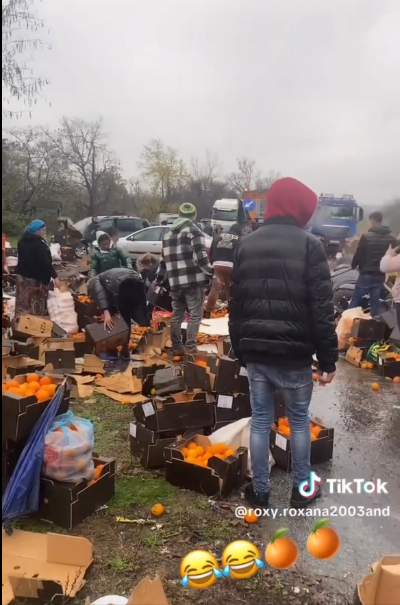 Prima pagină » Actualitate » Zeci de oameni s-au înghesuit să strângă portocalele împrăștiate pe carosabil, după răsturnarea unui TIR în Mehedinți