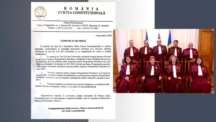 Curtea Constituțională a decis pe 6 decembrie, în unanimitate, anularea alegerilor prezidențiale, urmând ca procesul electoral să se reia în integralitate, potrivit unui comunicat al CCR.