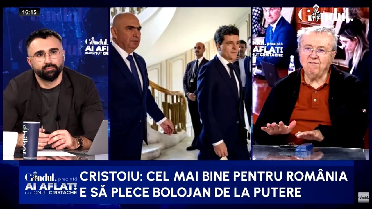 Invitat în cadrul emisiunii „Ai aflat! cu Ionuț Cristache!”, Ion Cristoiu a dezvăluit motivele pentru care îl apreciază pe Ilie Bolojan, după ce a transmis că plecarea sa din funcția de premier ar fi cea mai bună soluție pentru România.