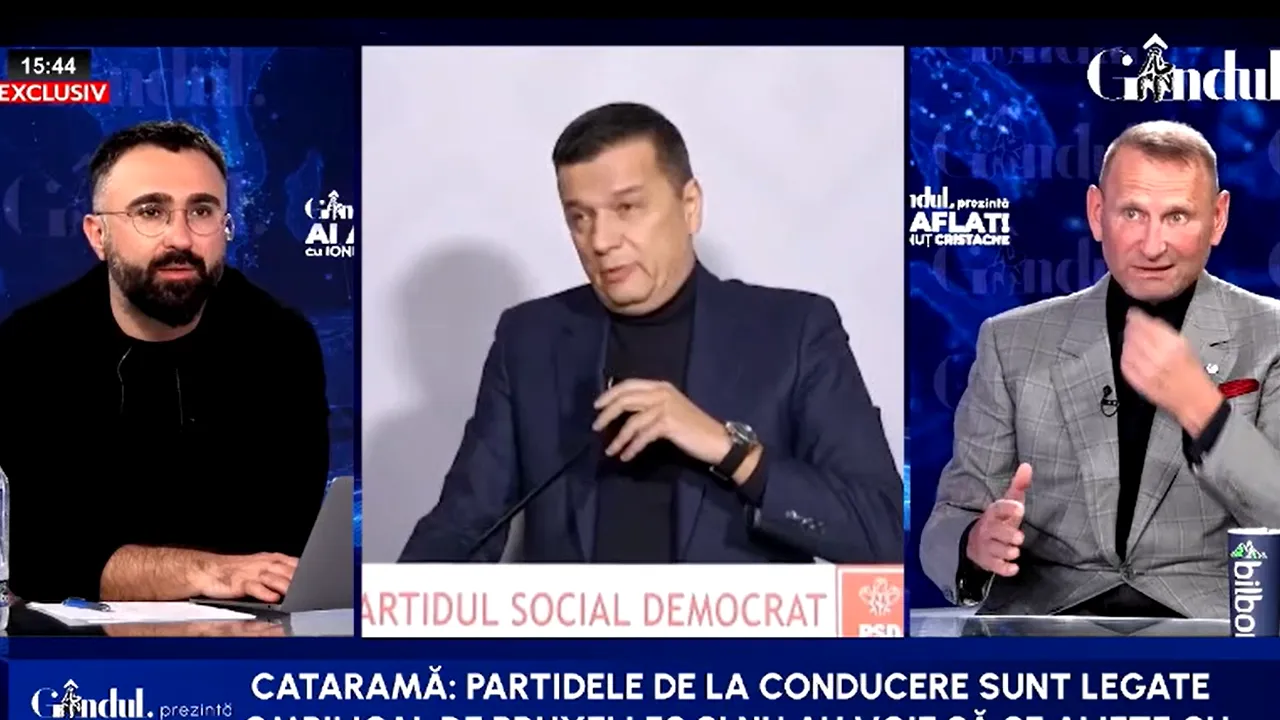 Cataramă: Dar și PSD-ul e forță progresistă, domnul Cristache. N-a venit domnul Grindeanu să spună că el legalizează căsătoriile între persoane homosexuale? Tocmai ce s-a scos denumirea de progresist din statut și a venit și a spus lucrul ăsta. Deși PSD-ul e un partid progresist, prin urmare, asta e realitatea. Scoatem (AUR), apare altul. Electoratul care este conservator în România, care este pro-biserică, pro-familie, este un electorat foarte mare, 40-50%.