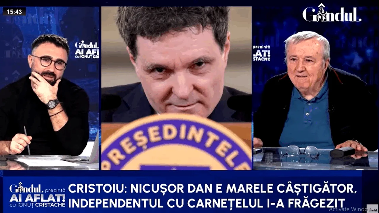 Prima pagină » Ai Aflat! cu Ionuț Cristache » Cristoiu: Ce fel de nevolnic e Nicușor Dan?/E marele câștigător/Independentul cu carnețelul i-a frăgezit